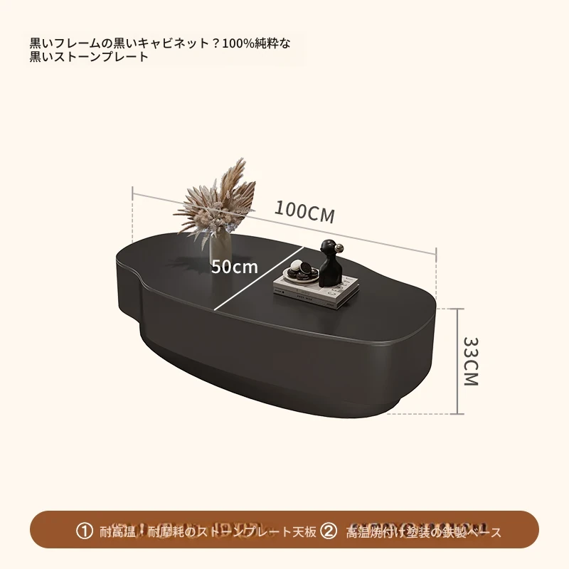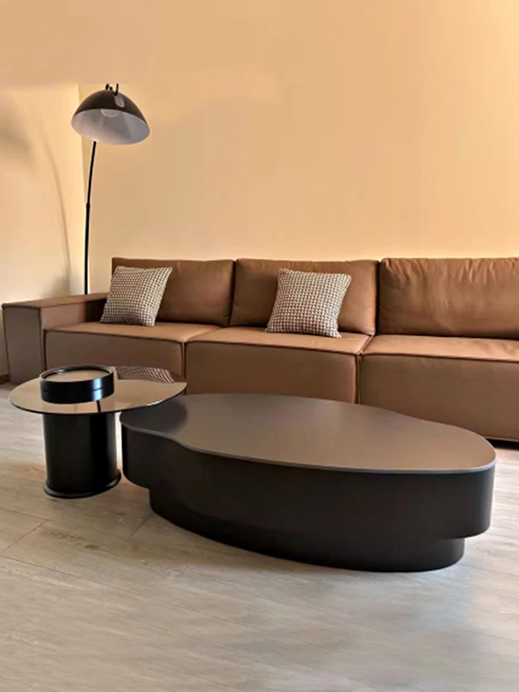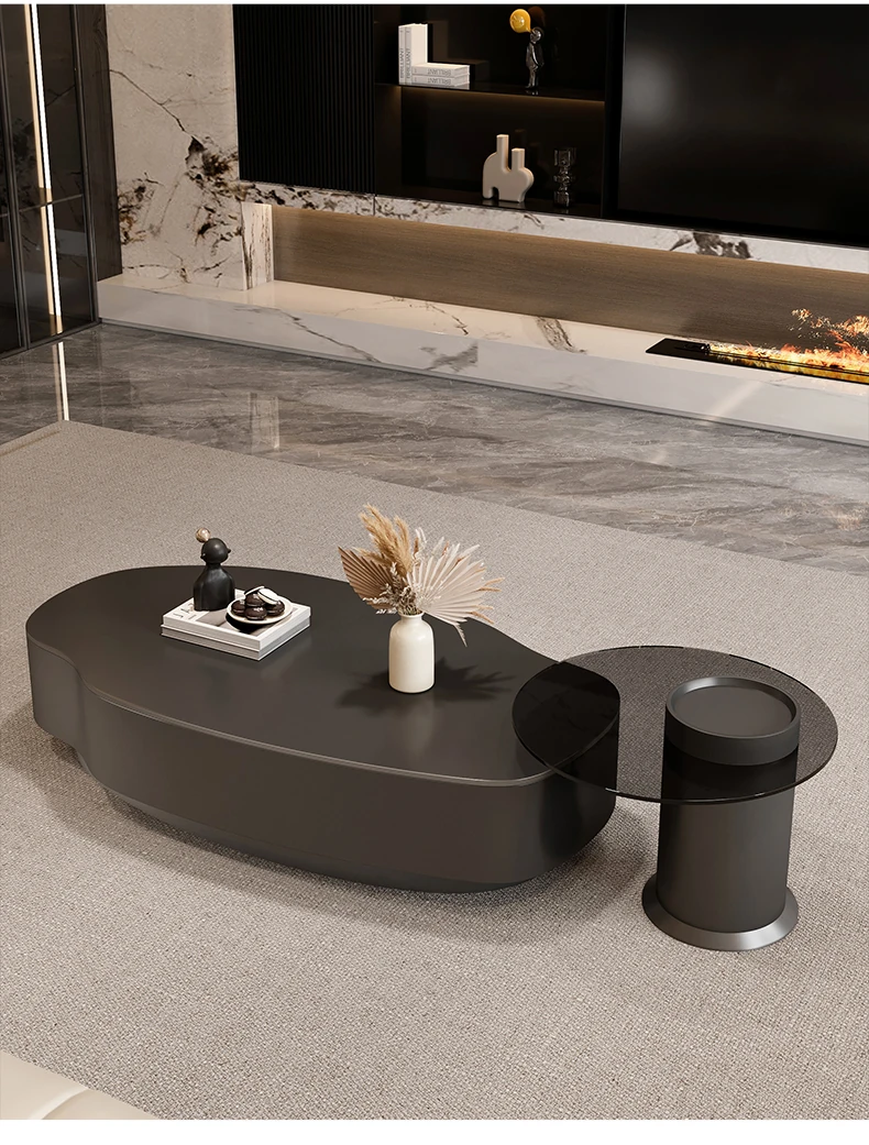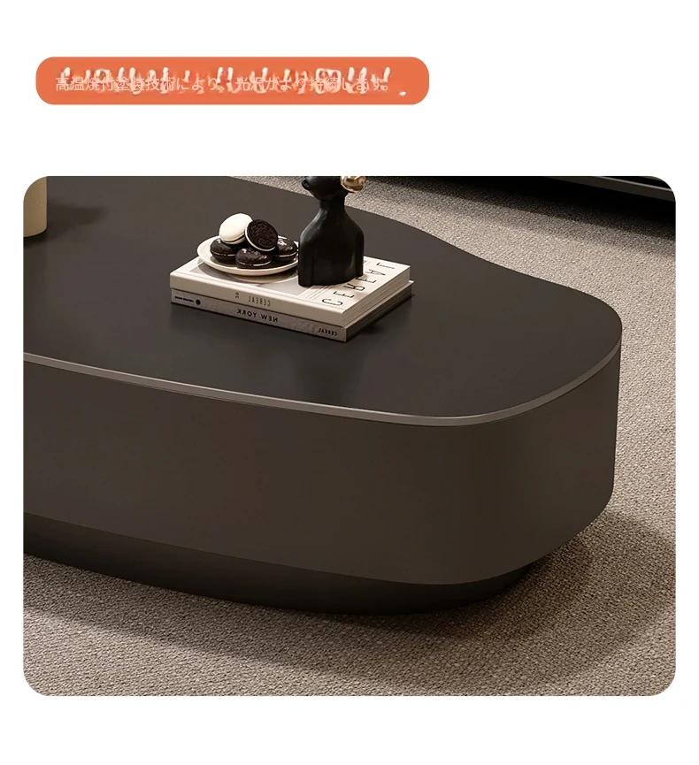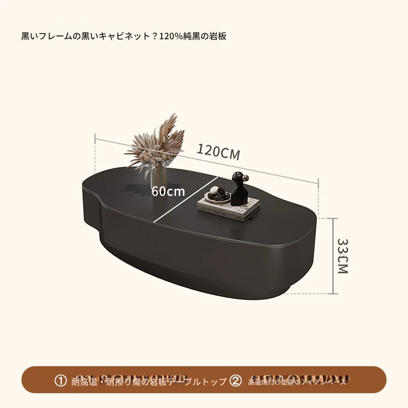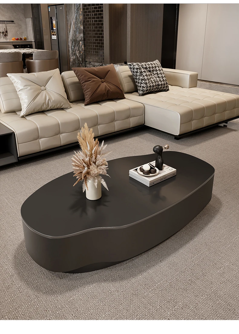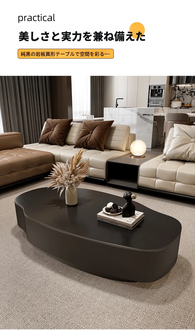 イタリアンミニマルデザインのクリエイティブマンゴーコンクリートテーブル - モダンでシンプルなリビングに最適!小さなスペースにもぴったりなラグジュアリー感あふれるブラックカラー。