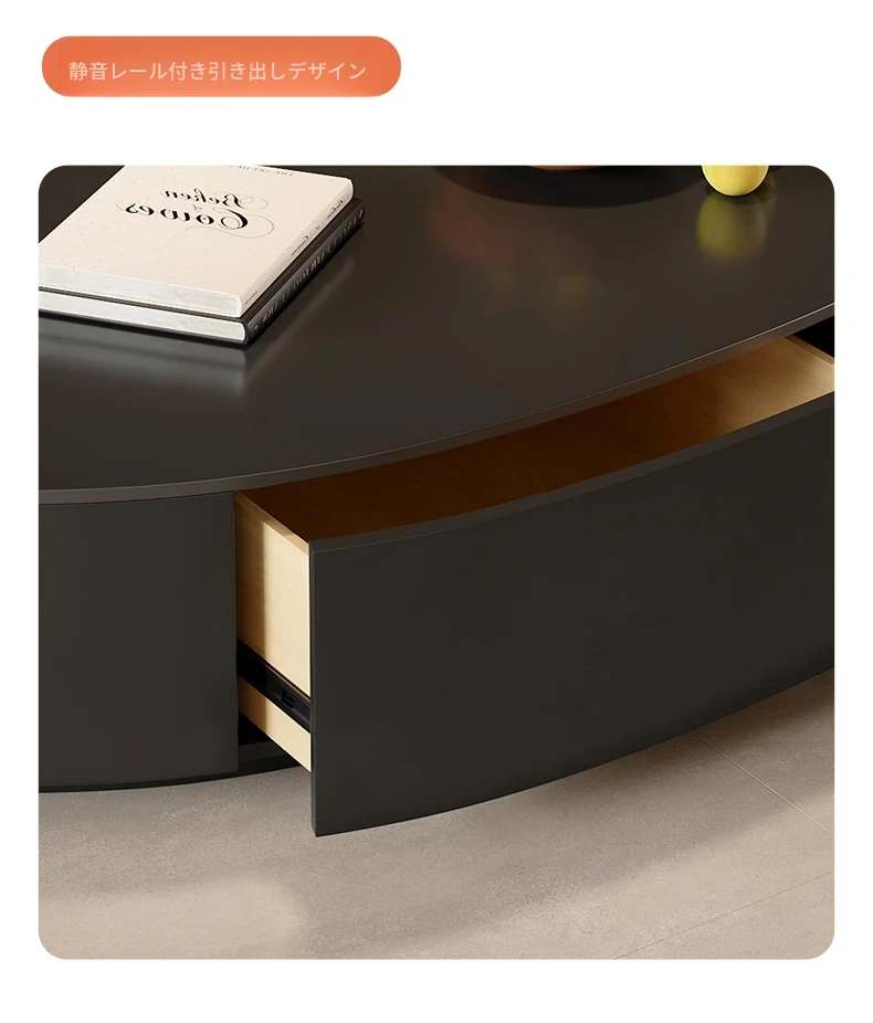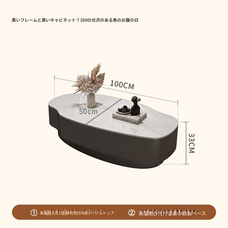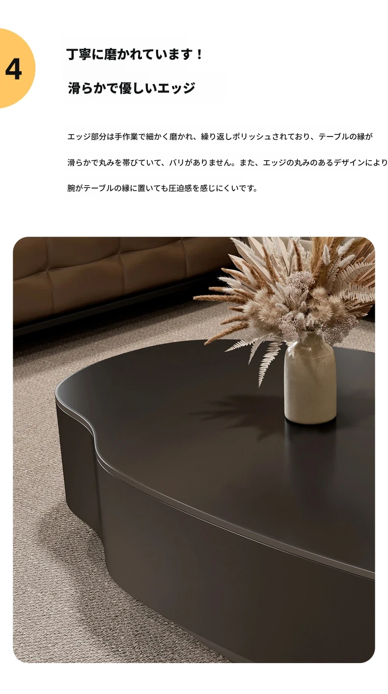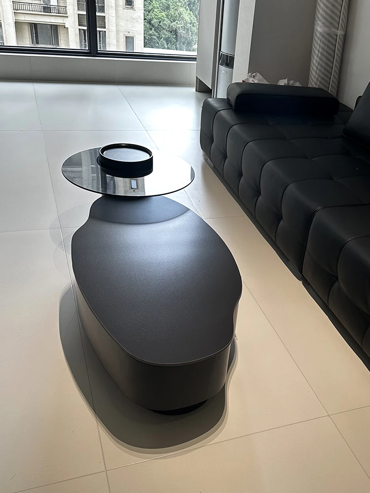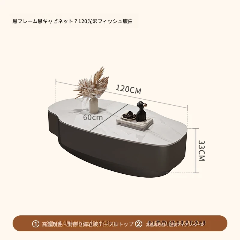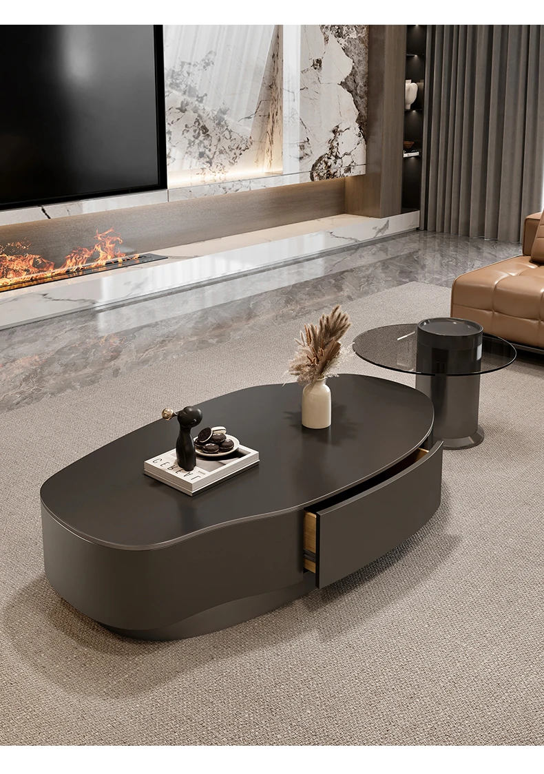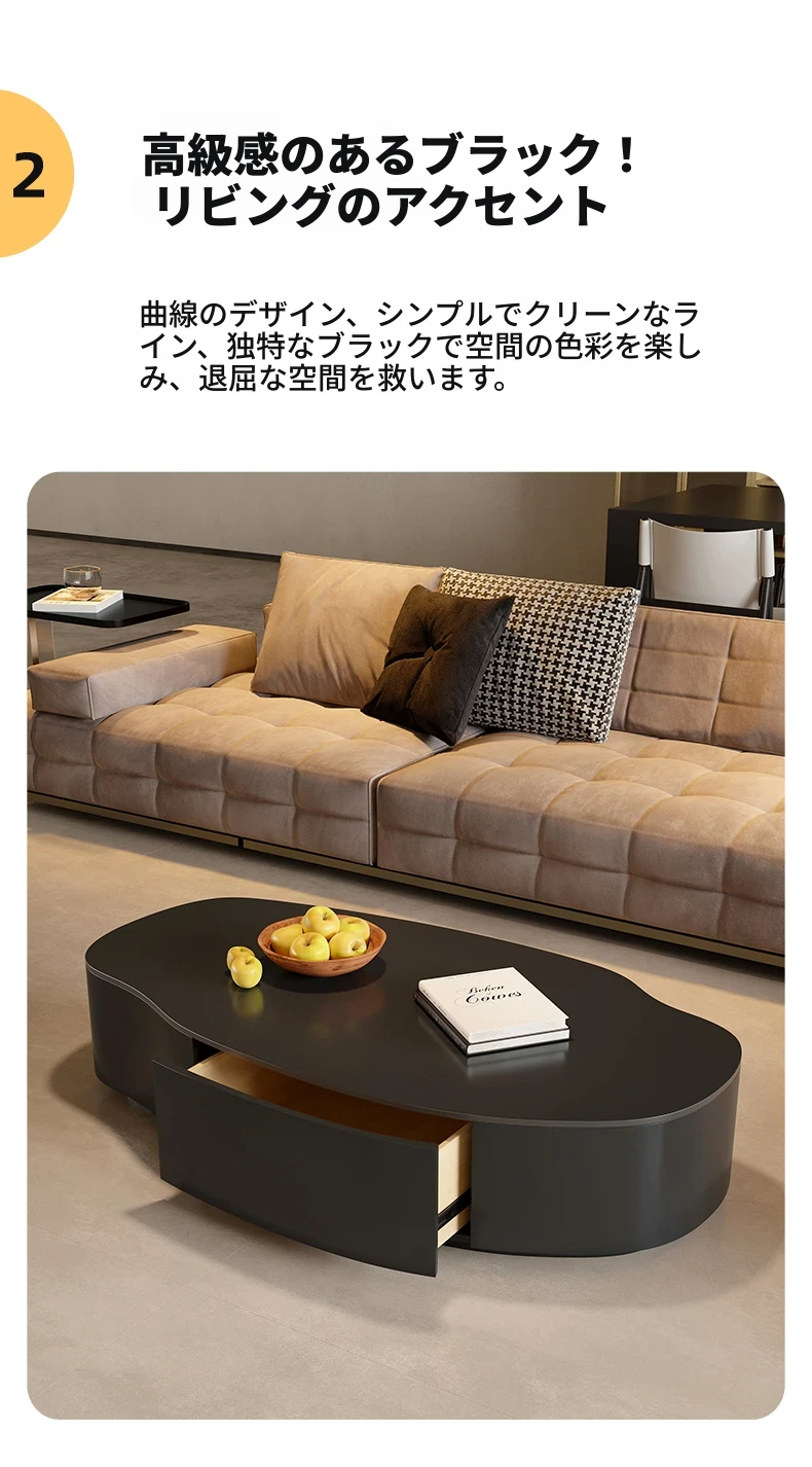 イタリアンミニマルデザインのクリエイティブマンゴーコンクリートテーブル - モダンでシンプルなリビングに最適!小さなスペースにもぴったりなラグジュアリー感あふれるブラックカラー。