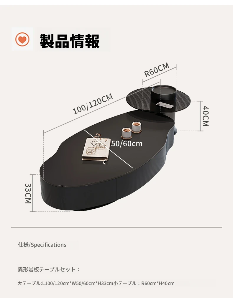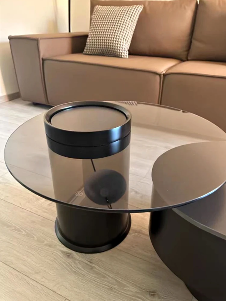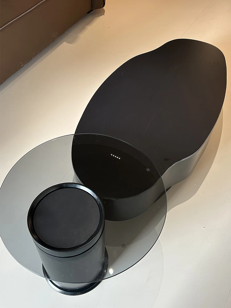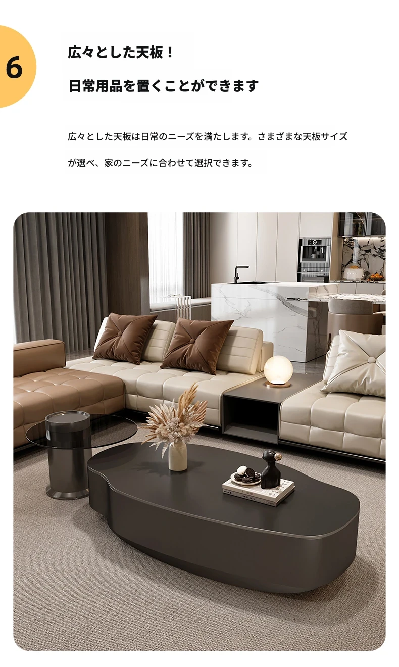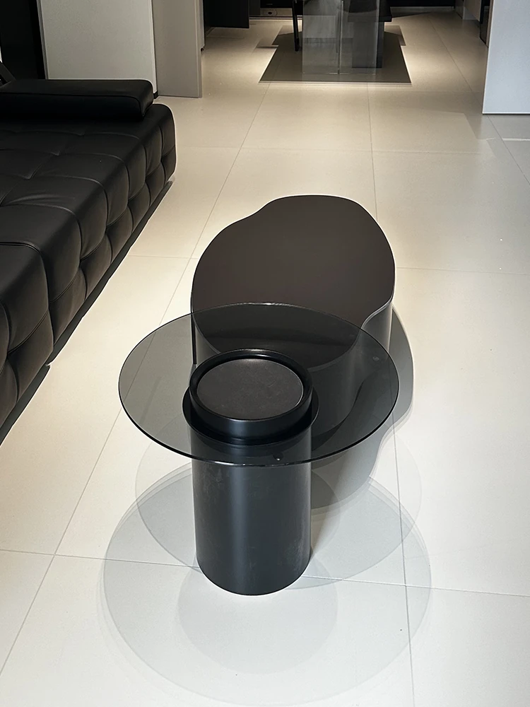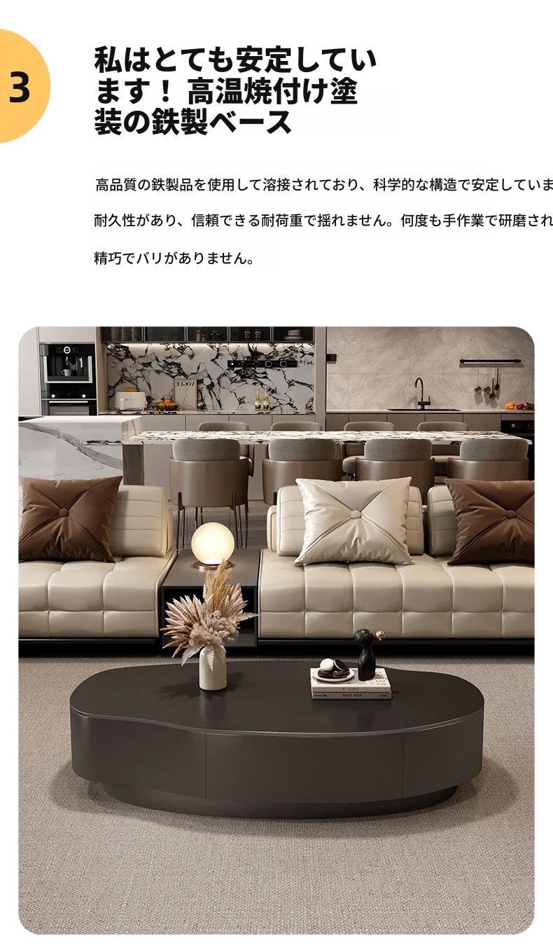 イタリアンミニマルデザインのクリエイティブマンゴーコンクリートテーブル - モダンでシンプルなリビングに最適!小さなスペースにもぴったりなラグジュアリー感あふれるブラックカラー。