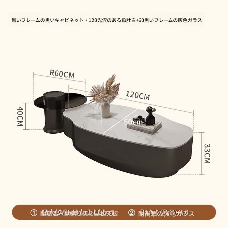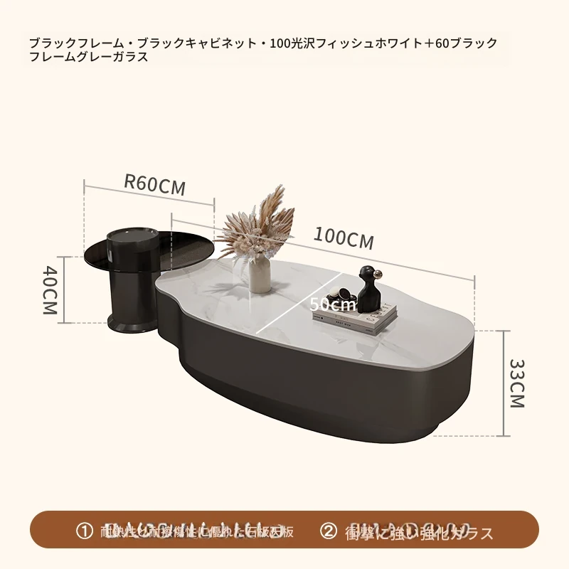 黒フレーム黒キャビネット:120光沢フィッシュホワイト+60グレーガラス