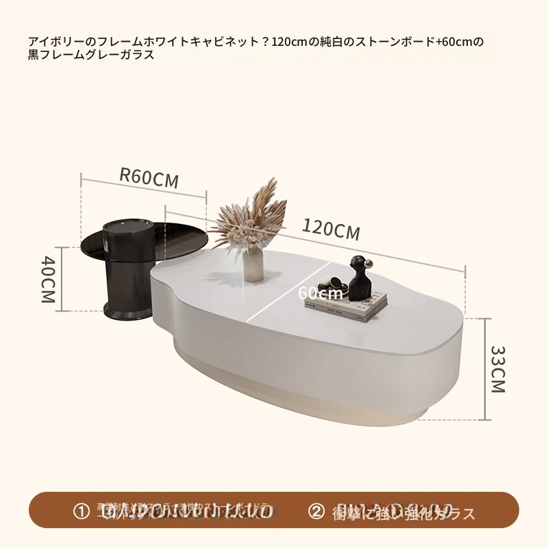 アイボリーフレーム白キャビネット:120ピュアホワイトストーン+60黒フレームグレーガラス