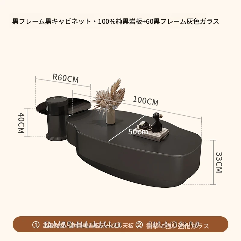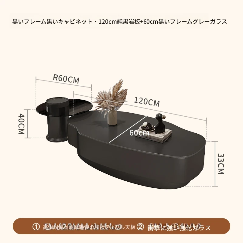 黒フレーム黒キャビネット:120ピュアブラックストーン+60グレーガラス