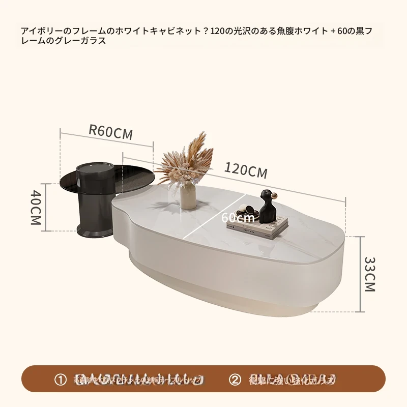 アイボリーフレーム白キャビネット:120光沢フィッシュホワイト