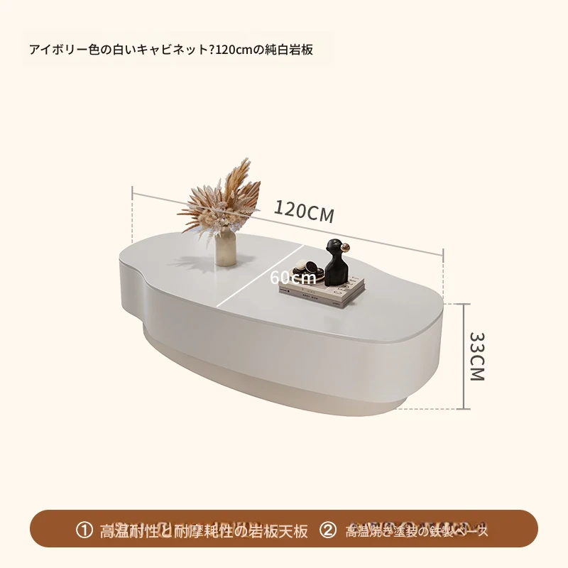 アイボリーフレーム白キャビネット:120ピュアホワイトストーン