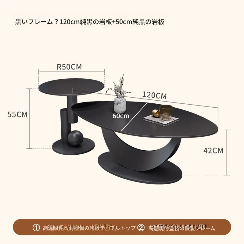 黒フレーム:120葉状純黒岩板+50純黒岩板