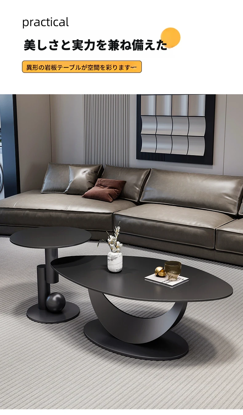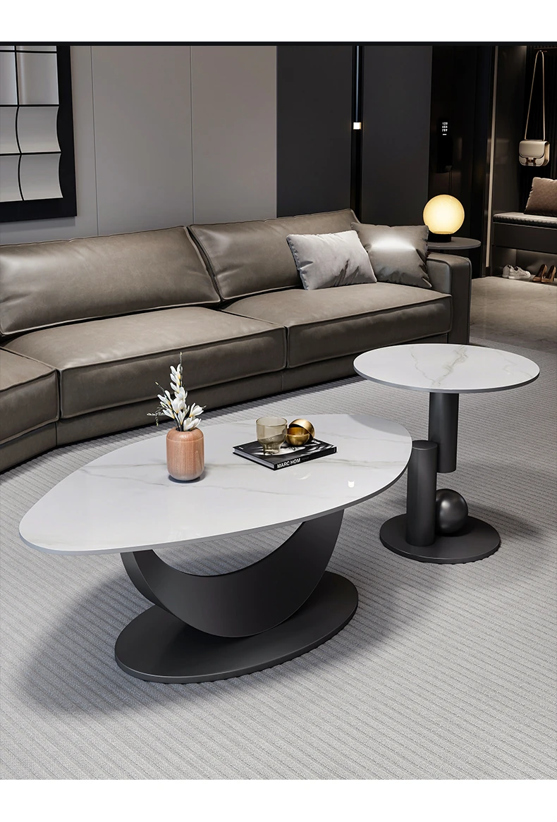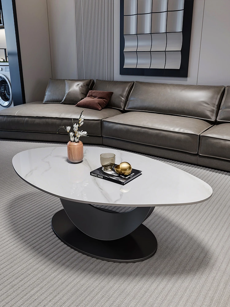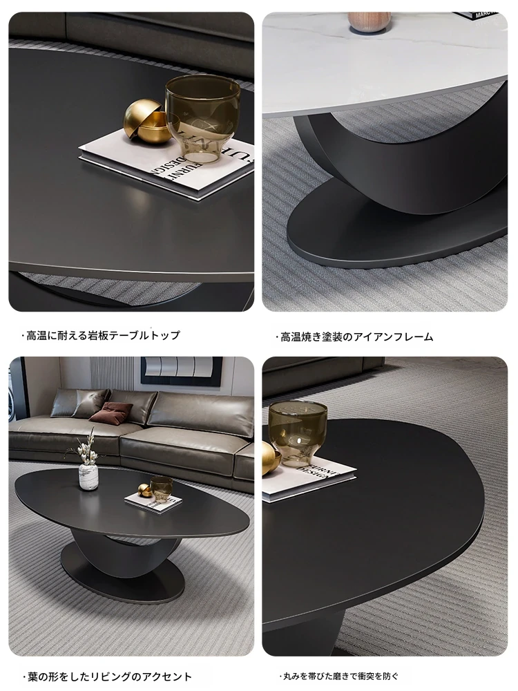 モダンミニマリストのクリエイティブリーフデザイン、ロックプレート製のコーヒーテーブル。小さなリビングに最適なイタリアンスタイルで、軽やかなラグジュアリー感を演出します。おしゃれな空間を手に入れましょう!