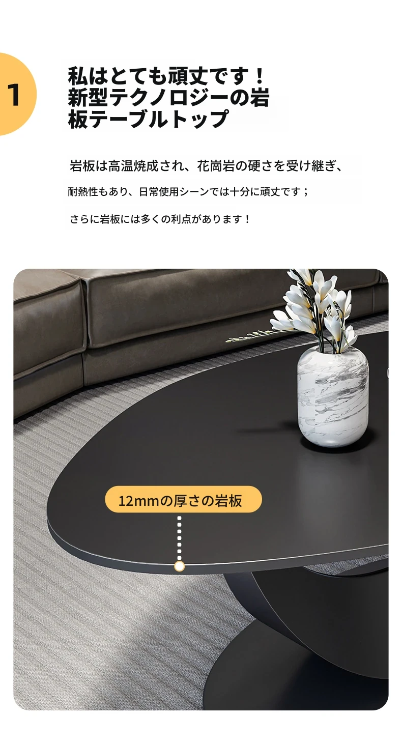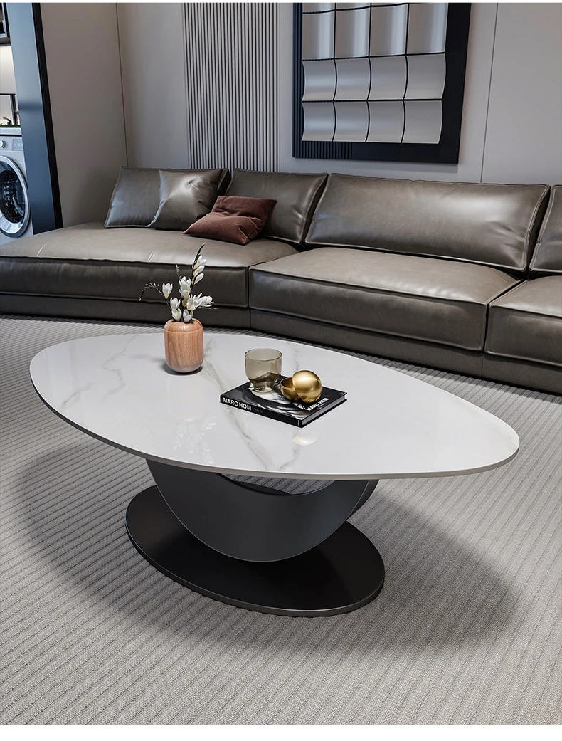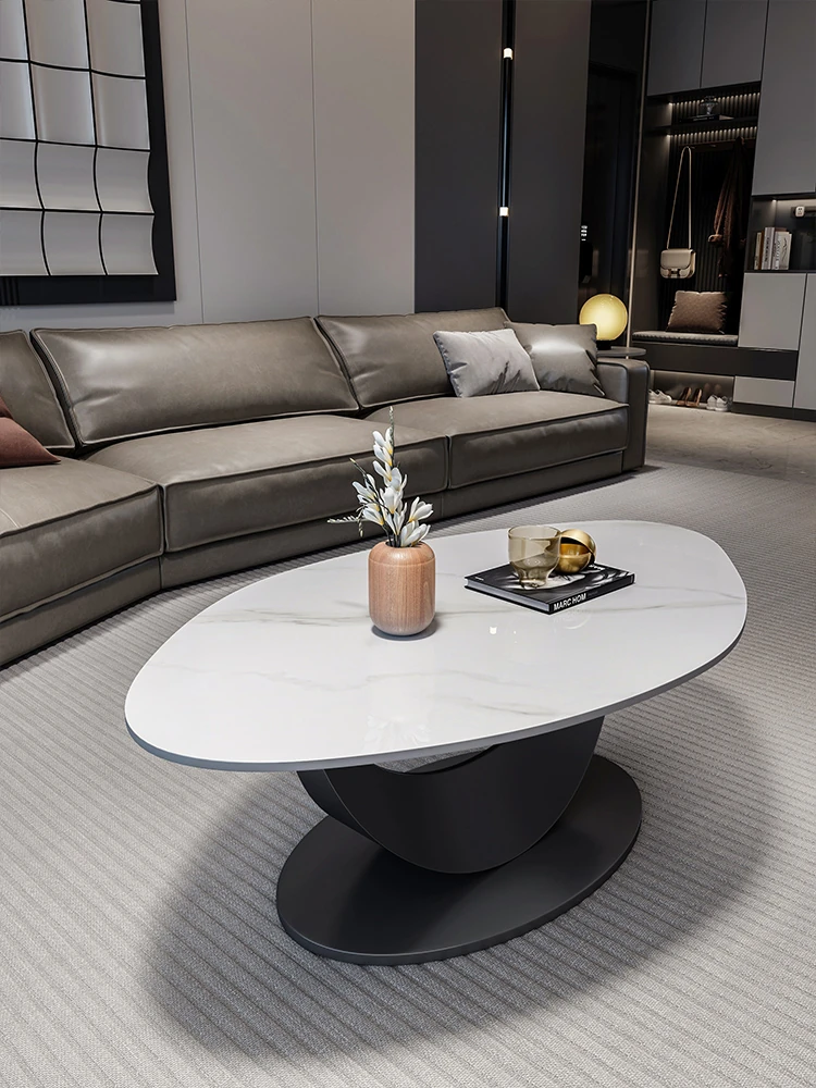 モダンミニマリストのクリエイティブリーフデザイン、ロックプレート製のコーヒーテーブル。小さなリビングに最適なイタリアンスタイルで、軽やかなラグジュアリー感を演出します。おしゃれな空間を手に入れましょう!