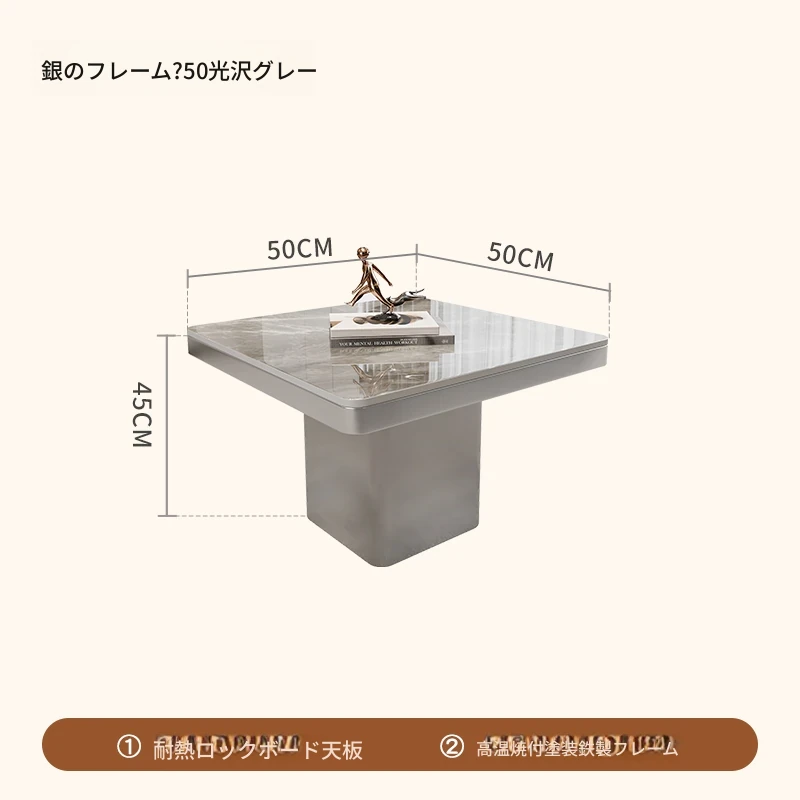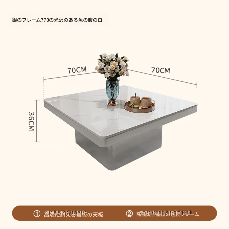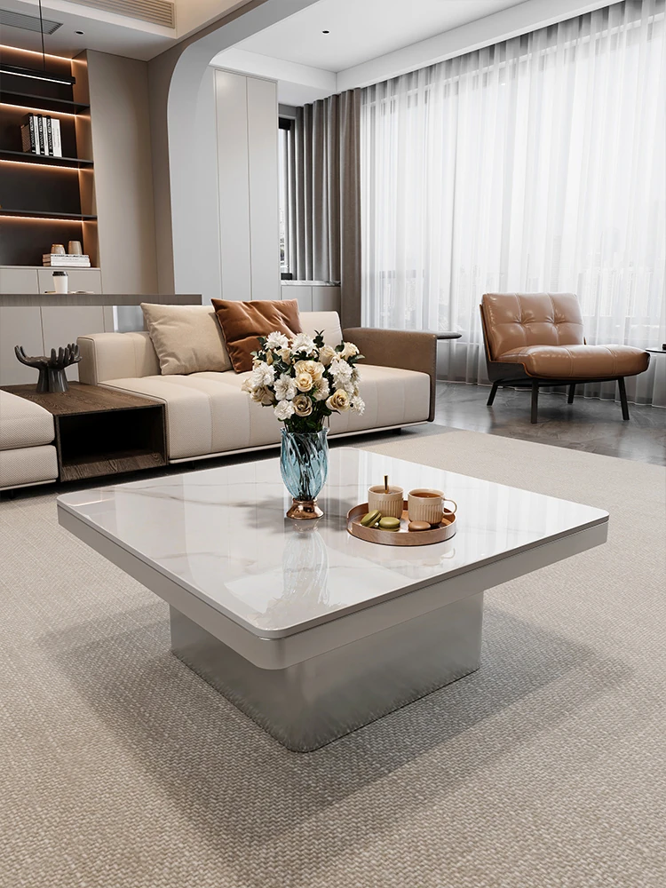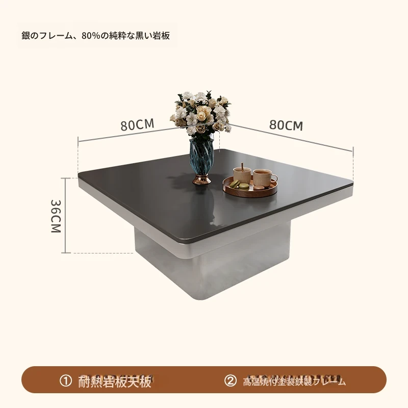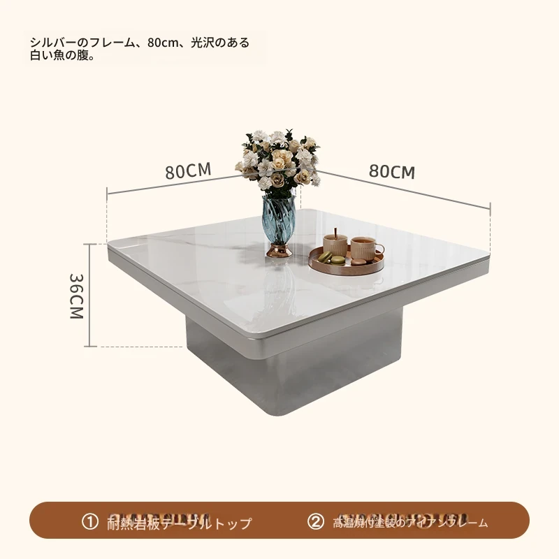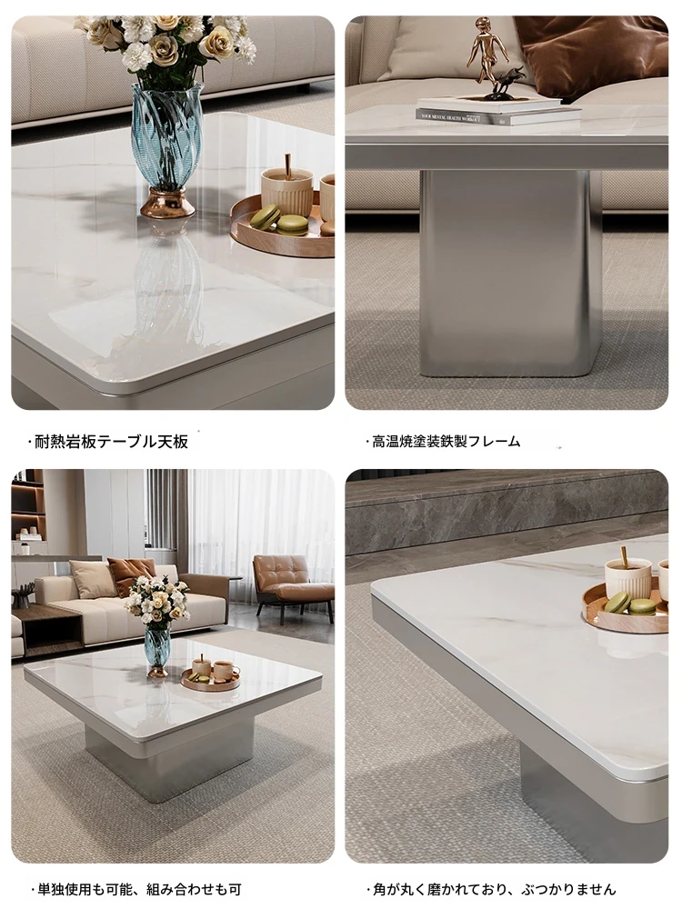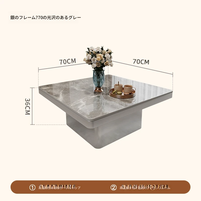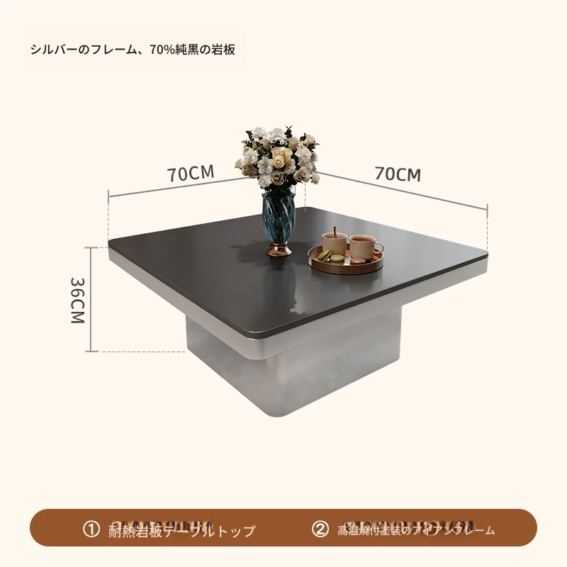 モダンミニマリストの小型岩板コーヒーテーブル|リビングルームにぴったりなスクエアデザイン|軽やかなラグジュアリー感を演出するイタリアンスタイルの高級感ある家具