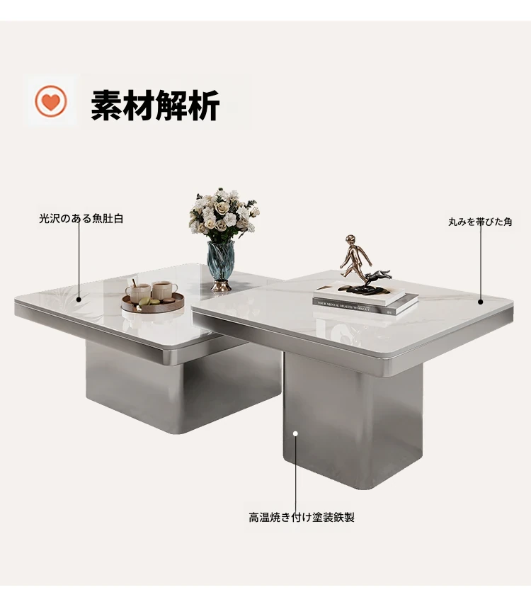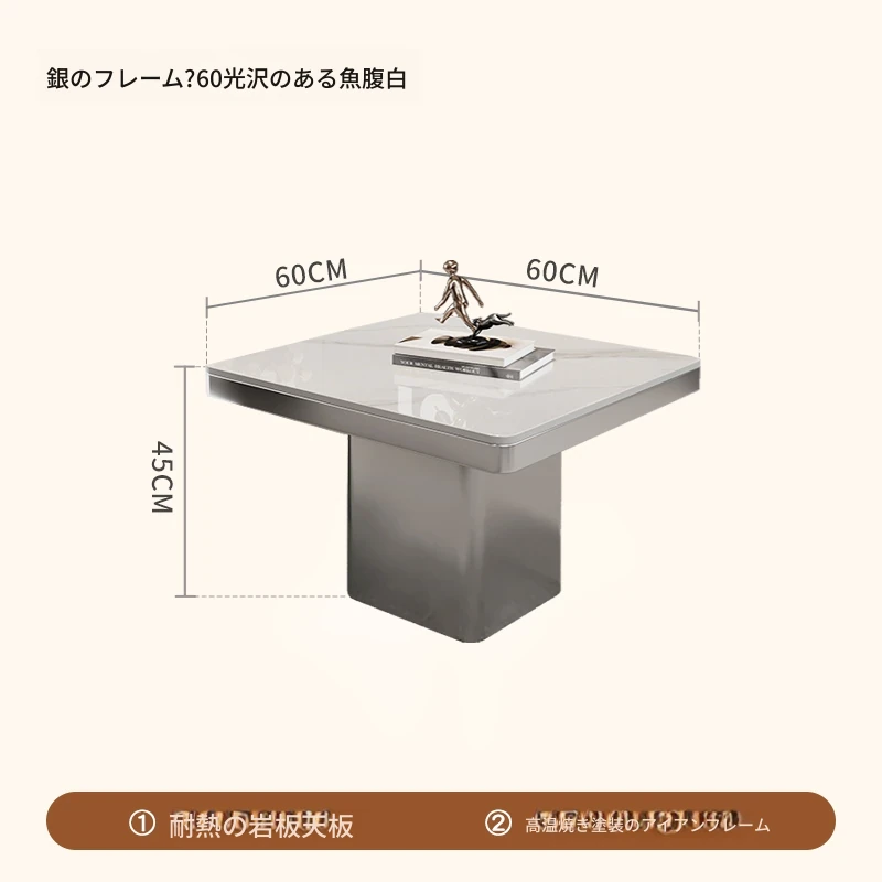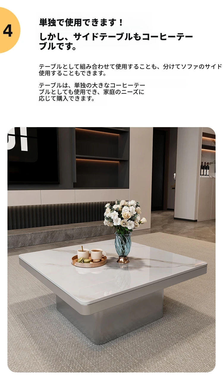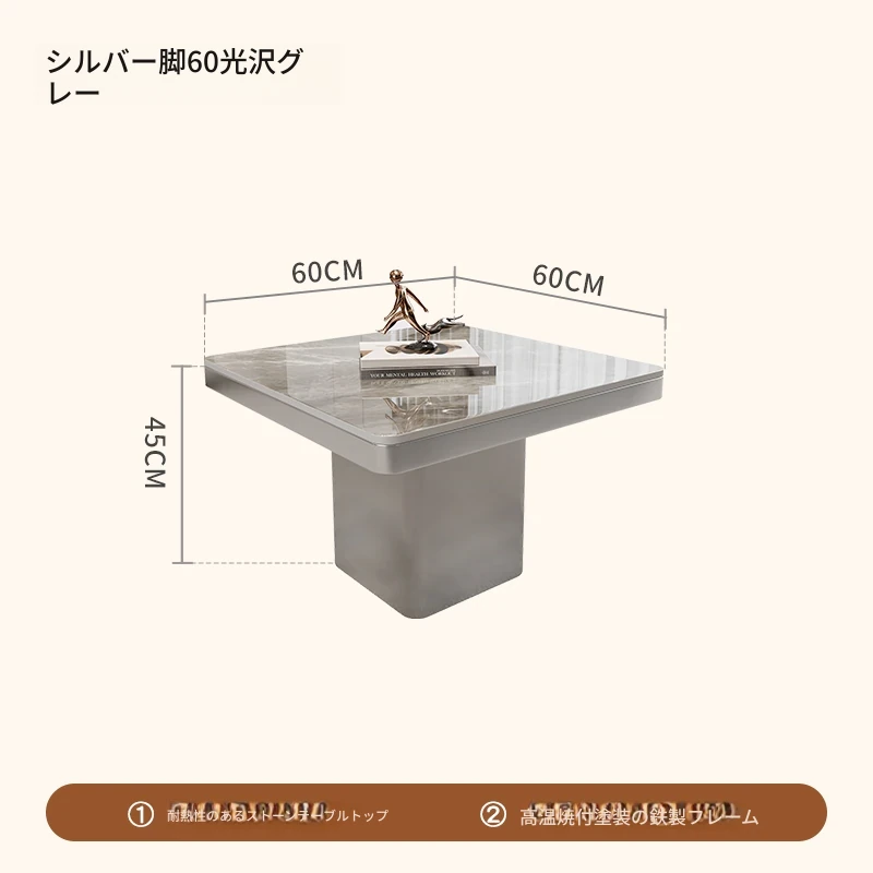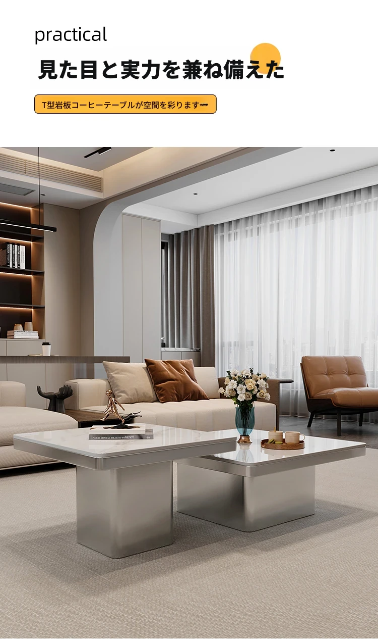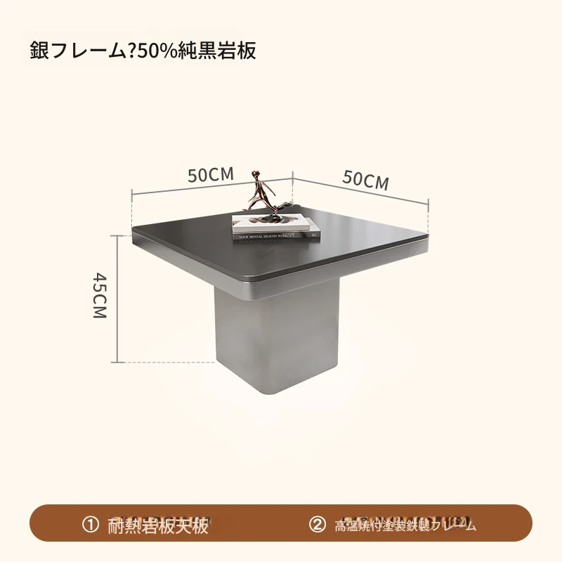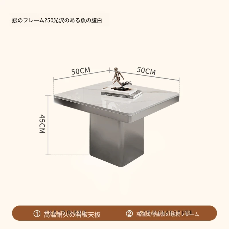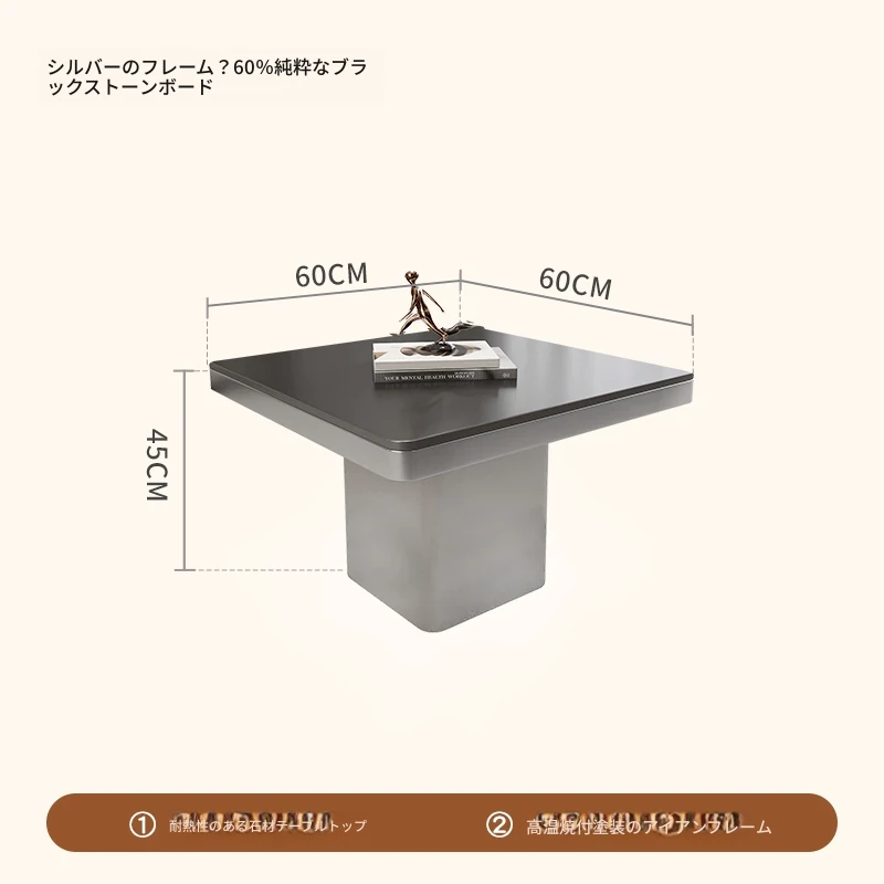 モダンミニマリストの小型岩板コーヒーテーブル|リビングルームにぴったりなスクエアデザイン|軽やかなラグジュアリー感を演出するイタリアンスタイルの高級感ある家具