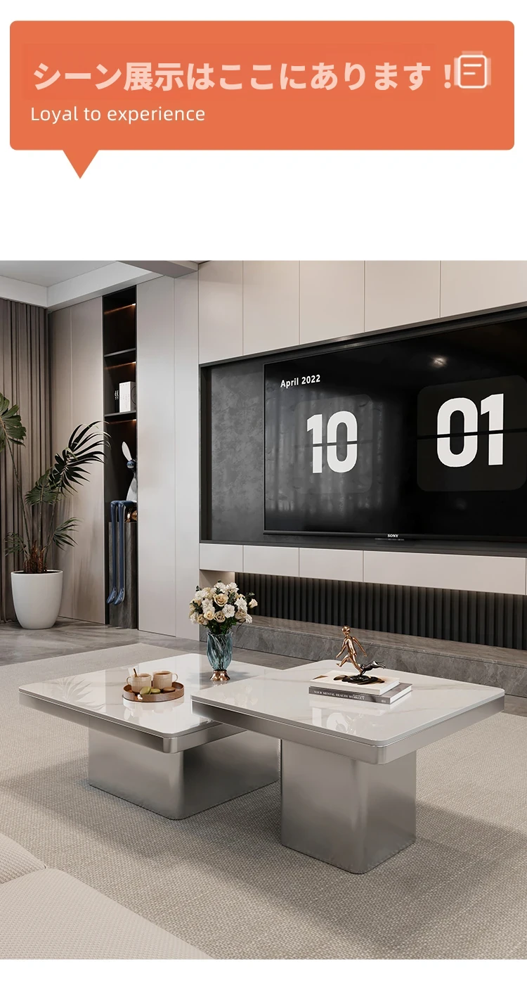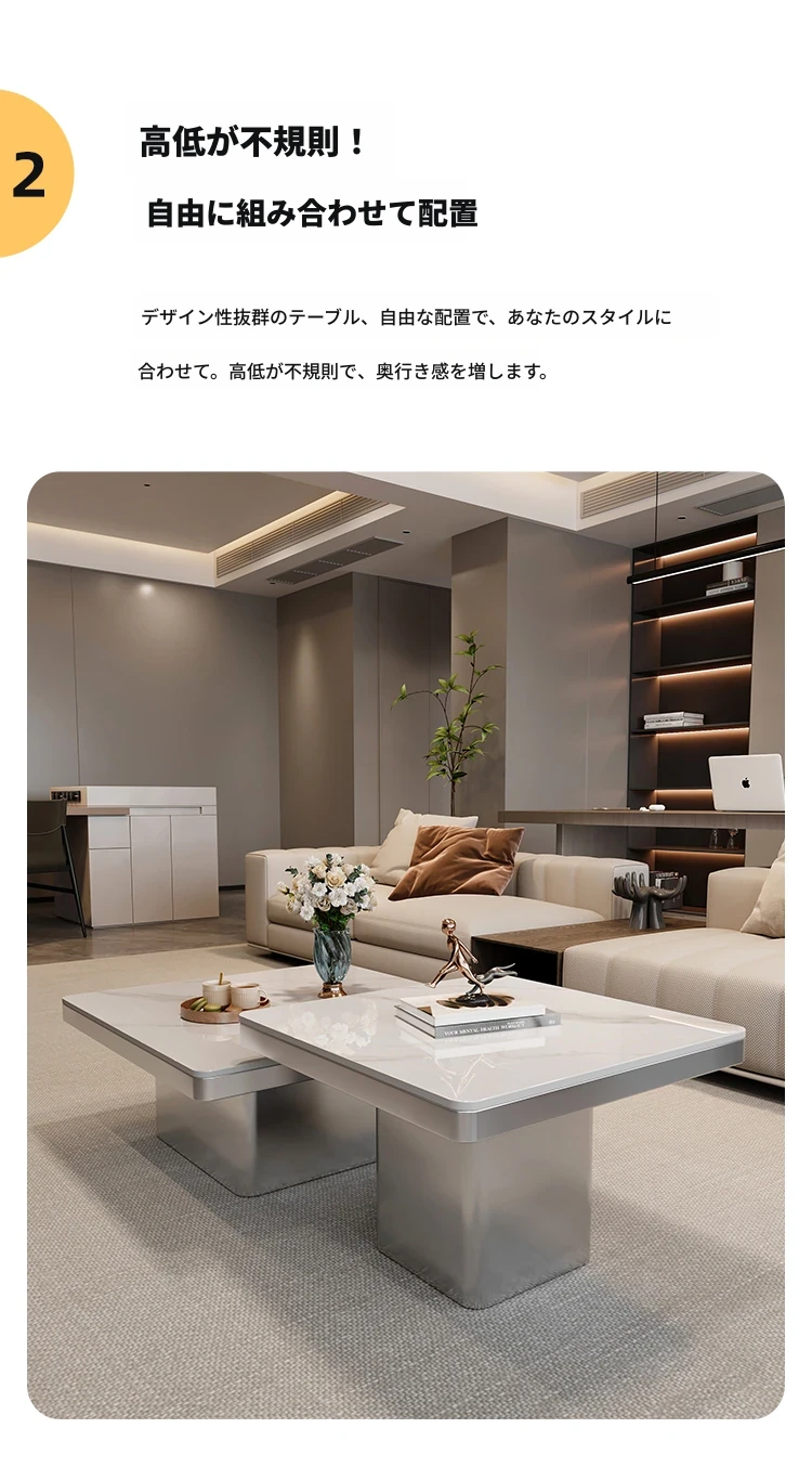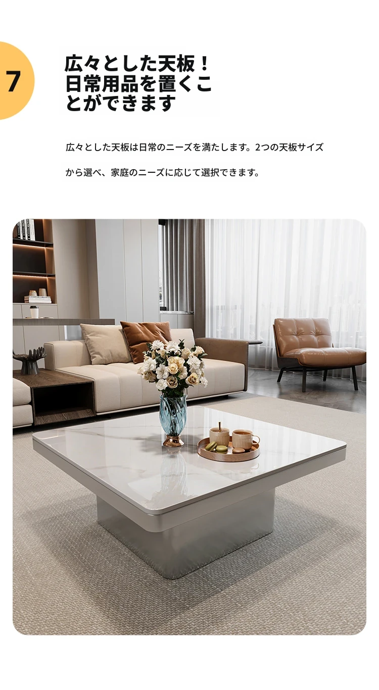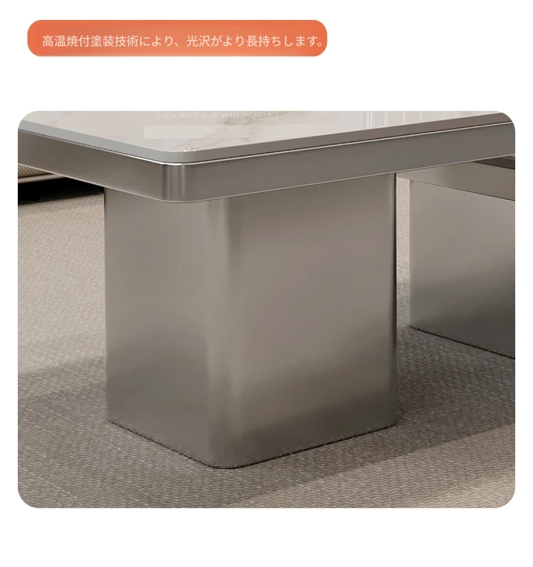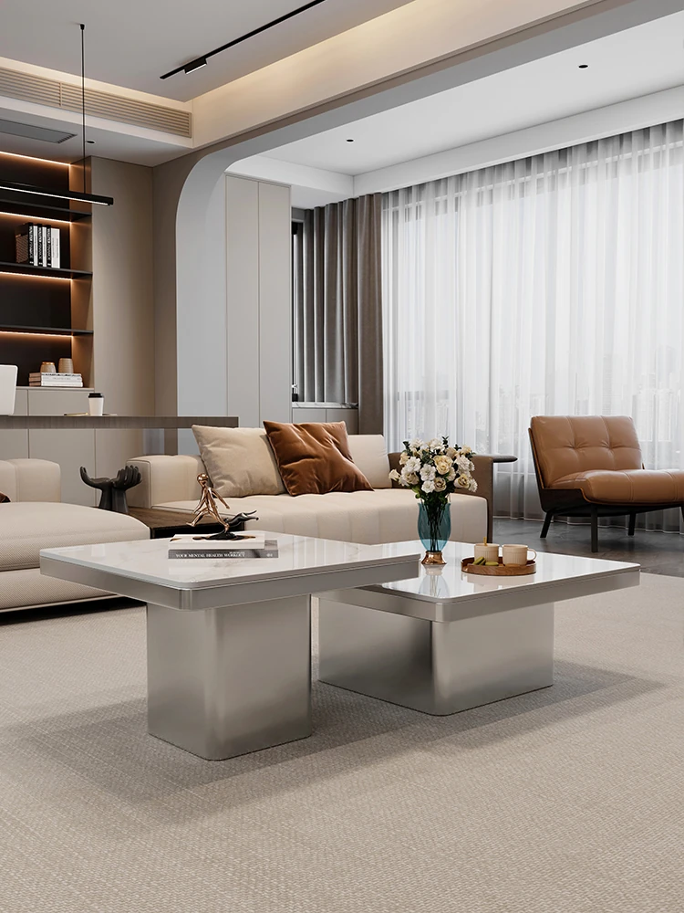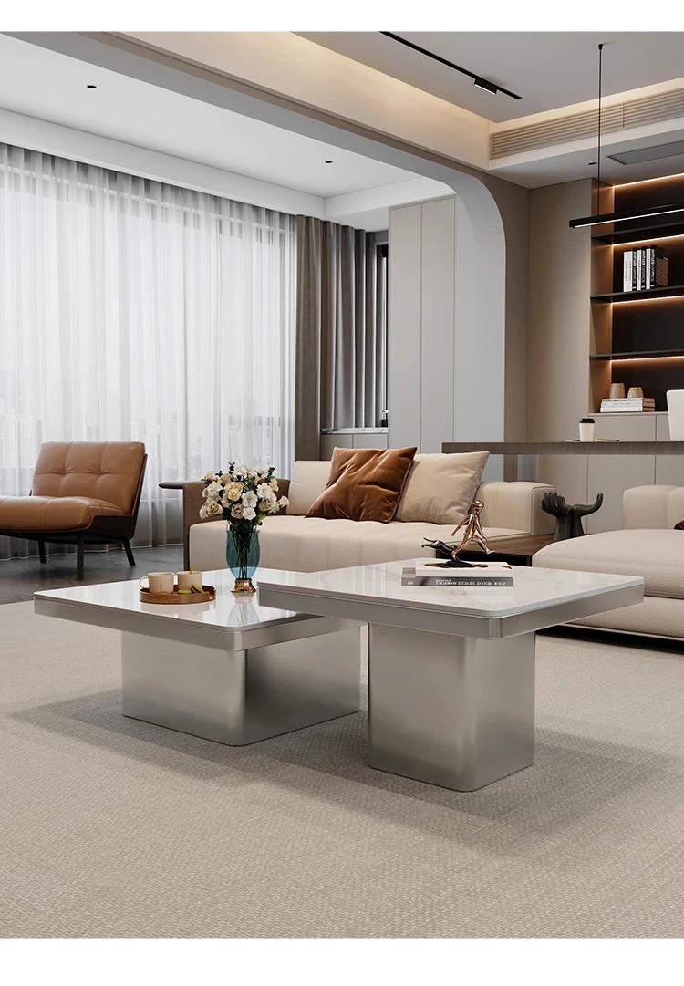 モダンミニマリストの小型岩板コーヒーテーブル|リビングルームにぴったりなスクエアデザイン|軽やかなラグジュアリー感を演出するイタリアンスタイルの高級感ある家具