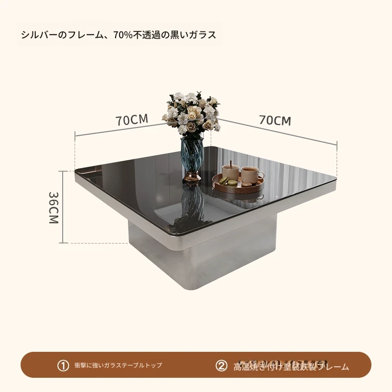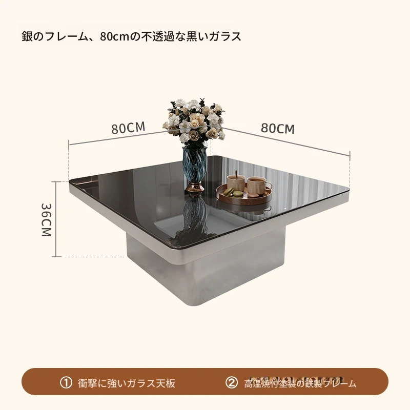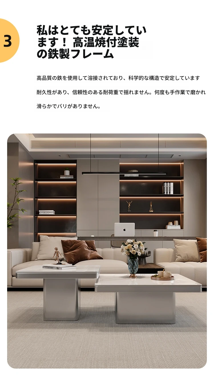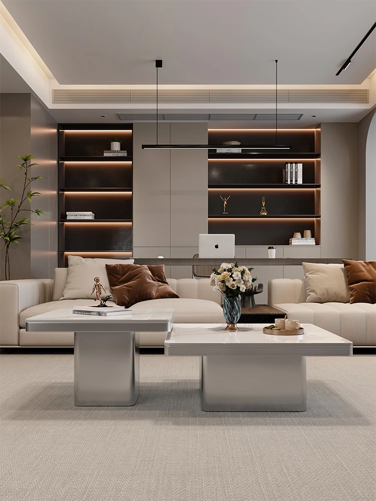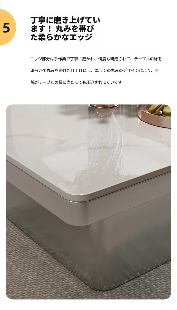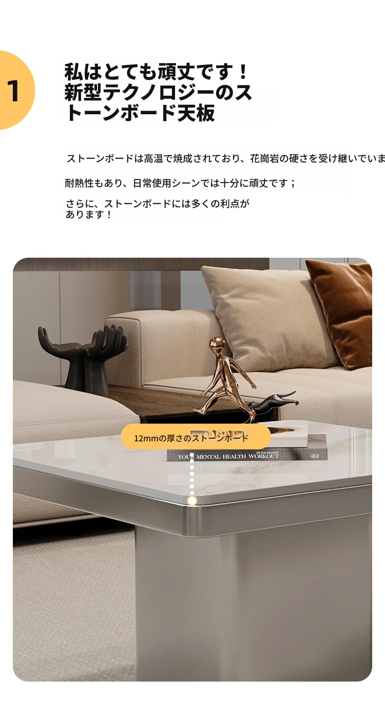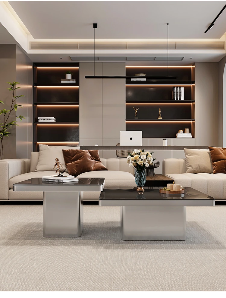 モダンミニマリストの小型岩板コーヒーテーブル|リビングルームにぴったりなスクエアデザイン|軽やかなラグジュアリー感を演出するイタリアンスタイルの高級感ある家具