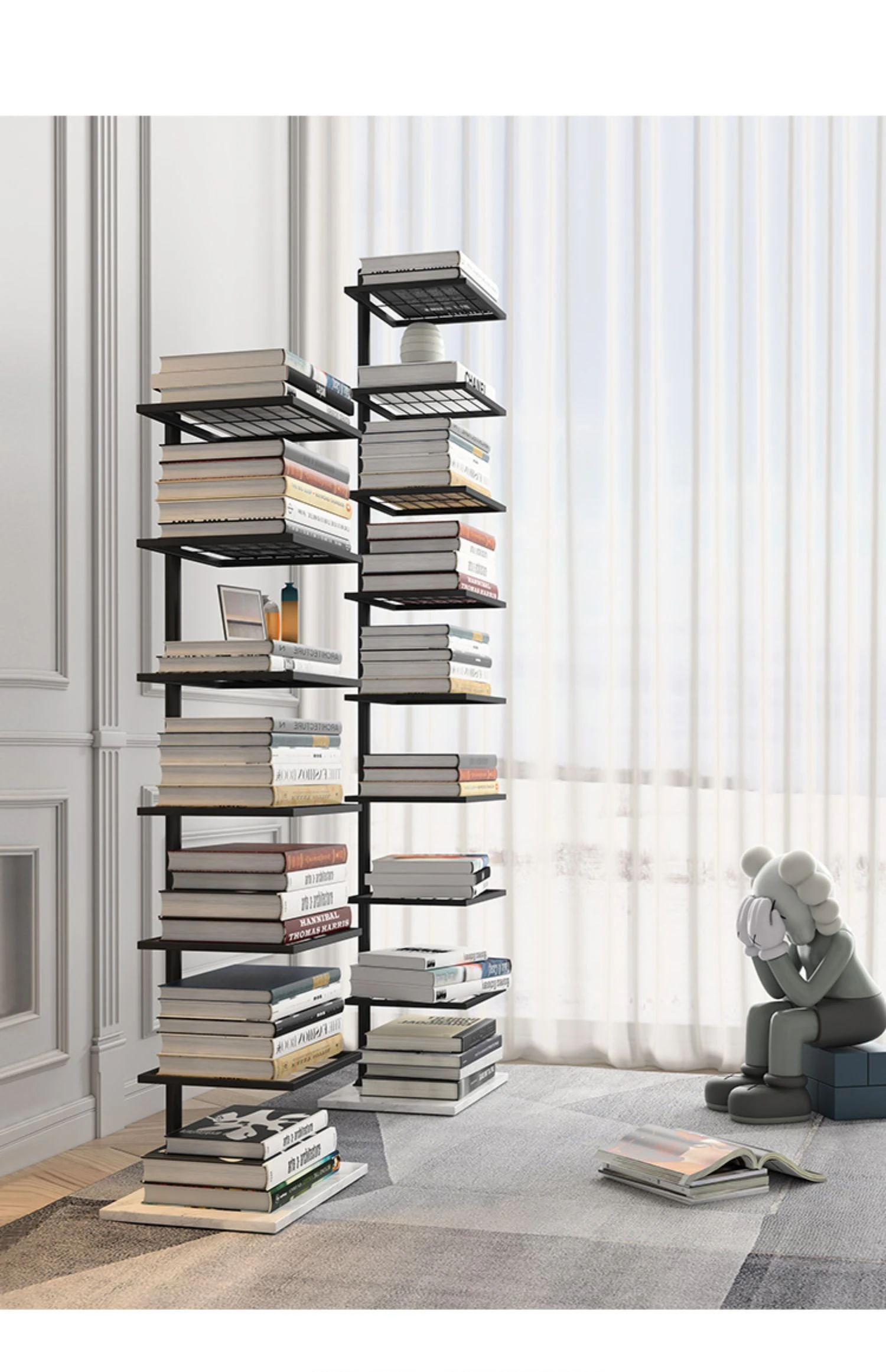 北欧風アイアンブックシェルフ|スタイリッシュな壁掛け収納|トレンドのクリエイティブデザイン|シンプルで隠れたコーナーラック|おしゃれに本を整理しよう!
