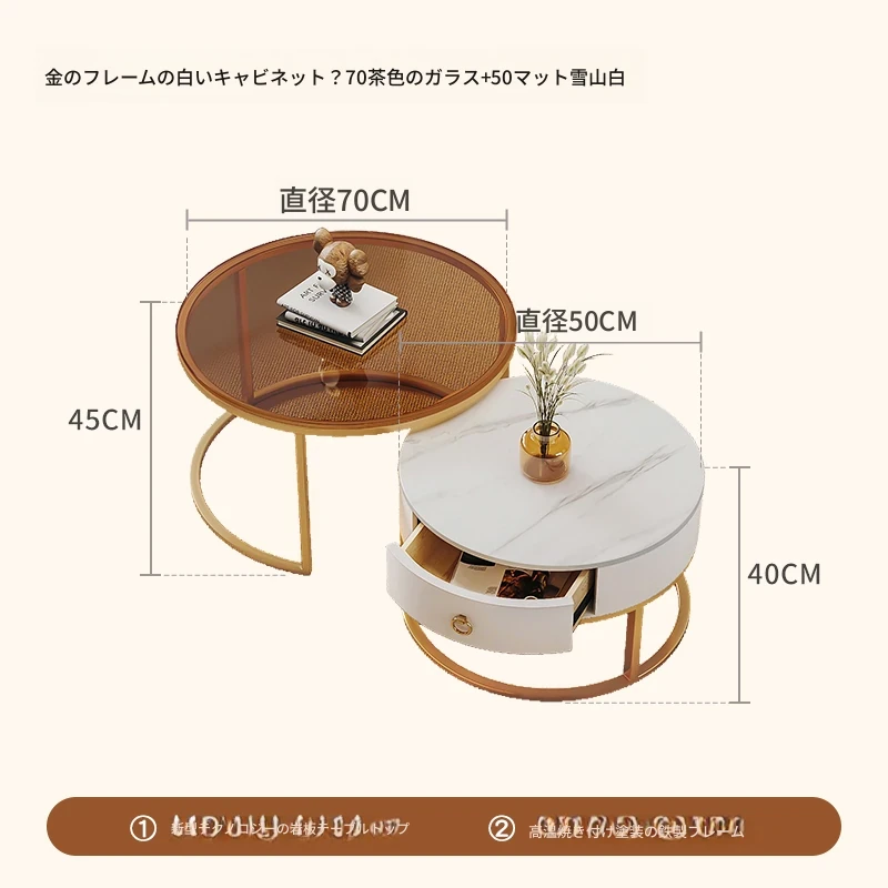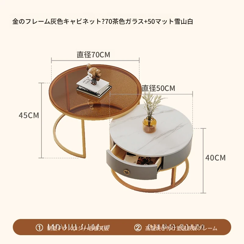 金フレーム灰キャビネット単抽:50マットスノー山白+70茶色ガラス