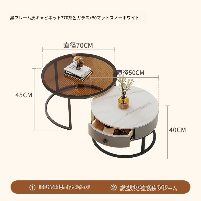 黒フレーム灰キャビネット単抽:50マットスノー山白+70茶色ガラス