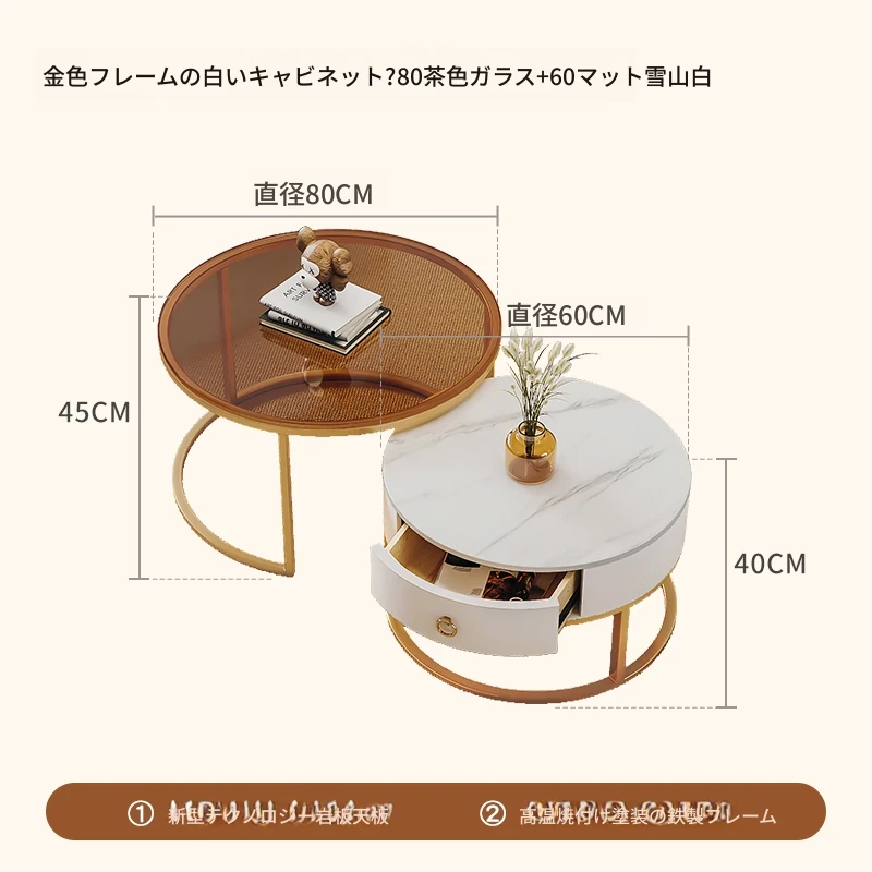 金フレーム灰キャビネット単抽:60マットスノー山白+80茶色ガラス
