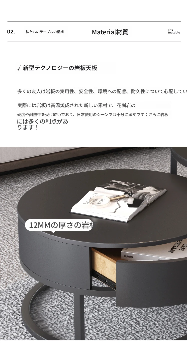 黒フレーム黒キャビネット単抽:50純黒岩板+70純黒岩板
