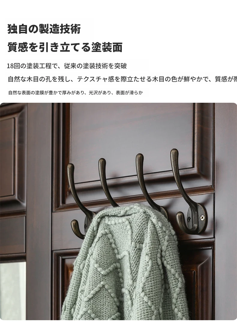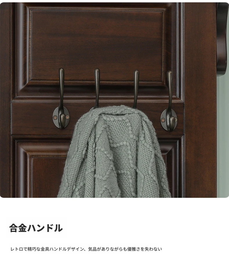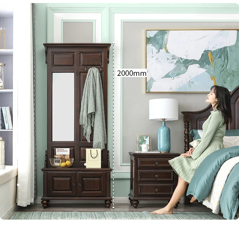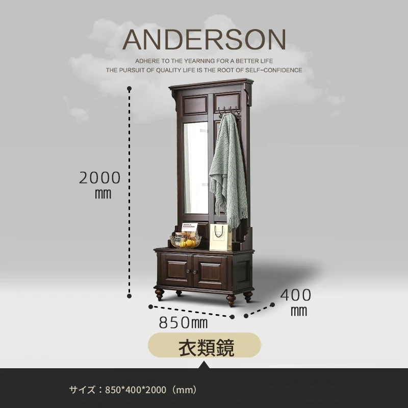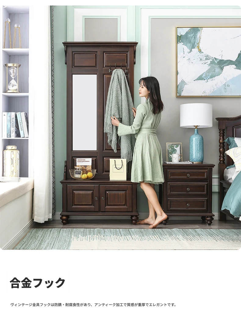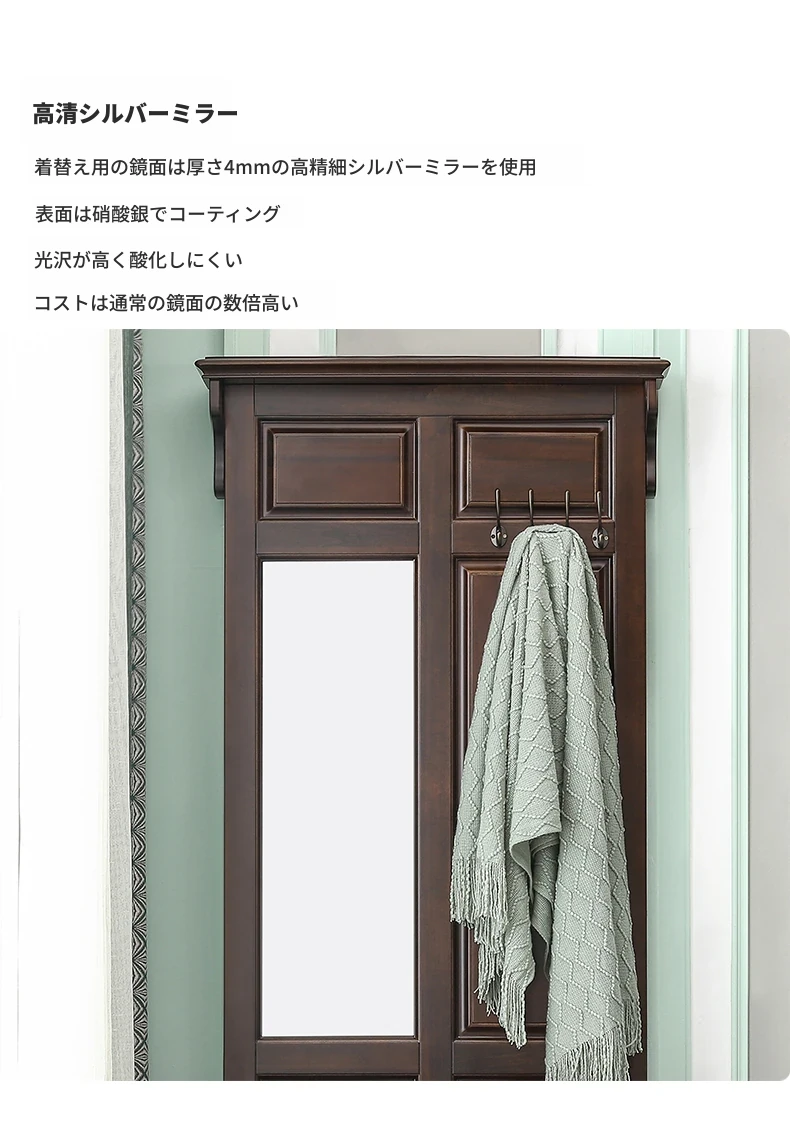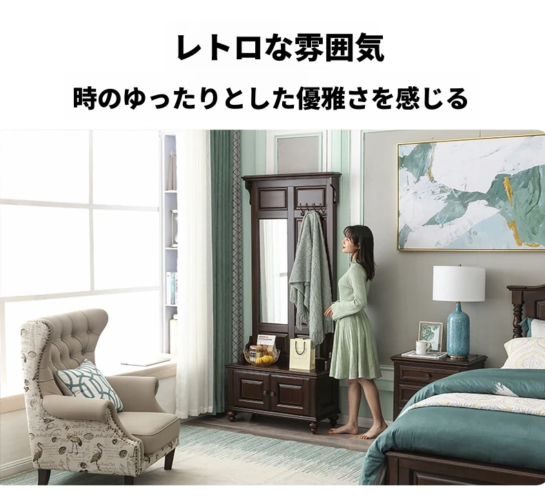 アメリカンカントリースタイルの全身鏡|全木製フロアミラー|収納キャビネット付き|軽やかなラグジュアリー感|寝室に最適な衣類ハンガー兼用!あなたの空間を美しく演出します。