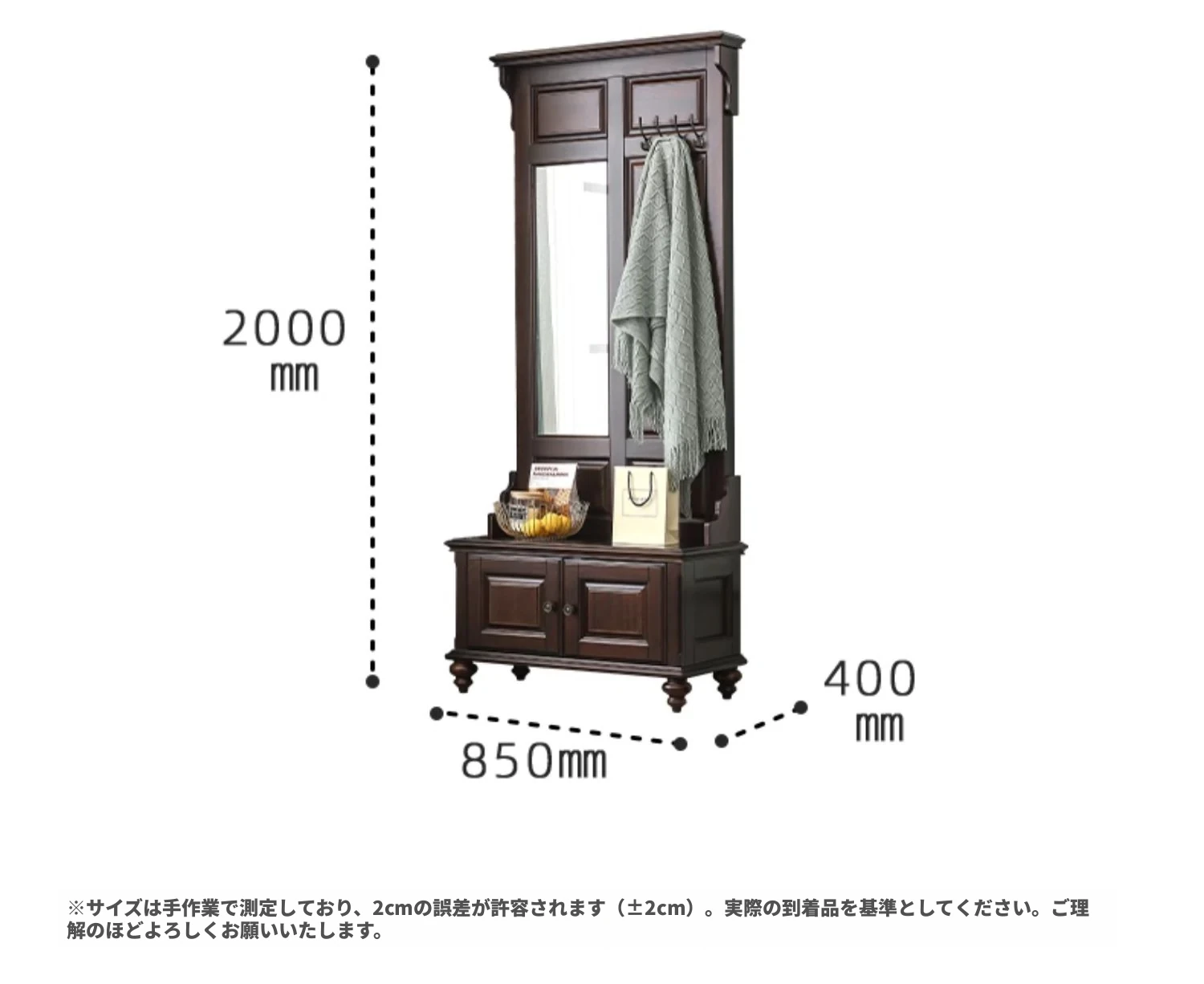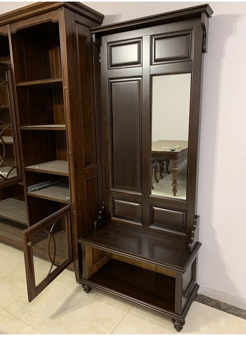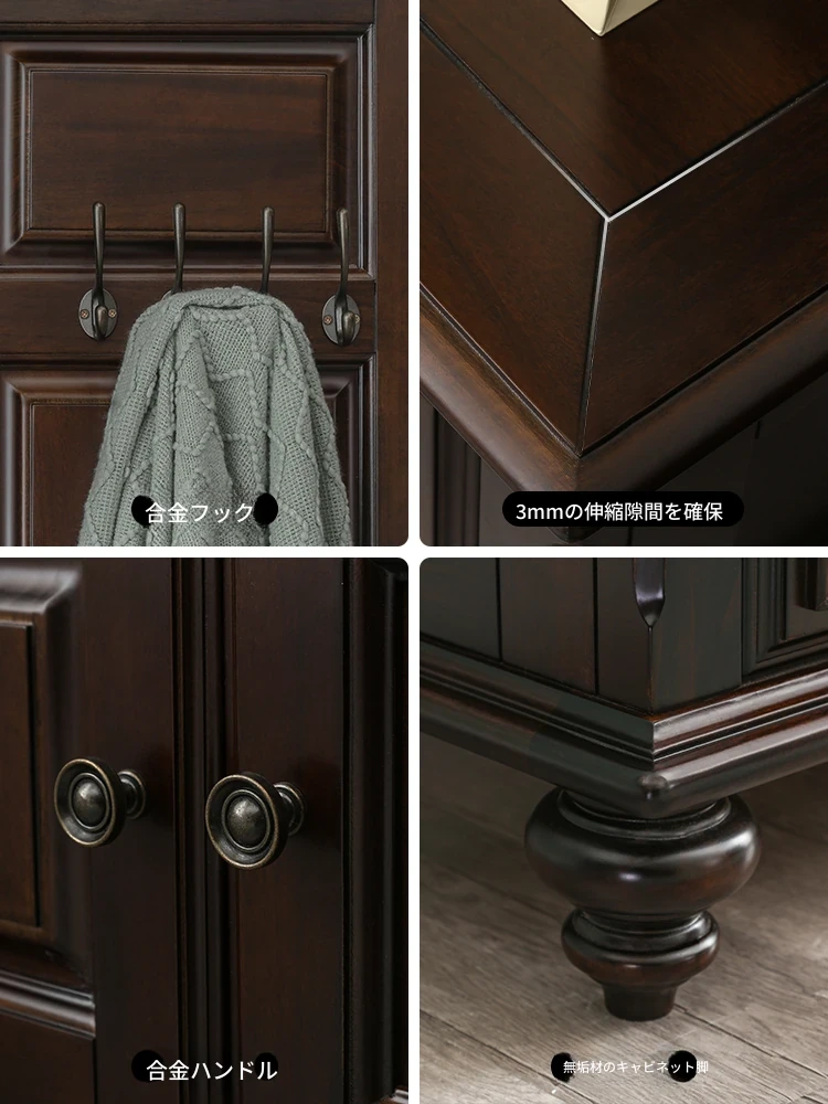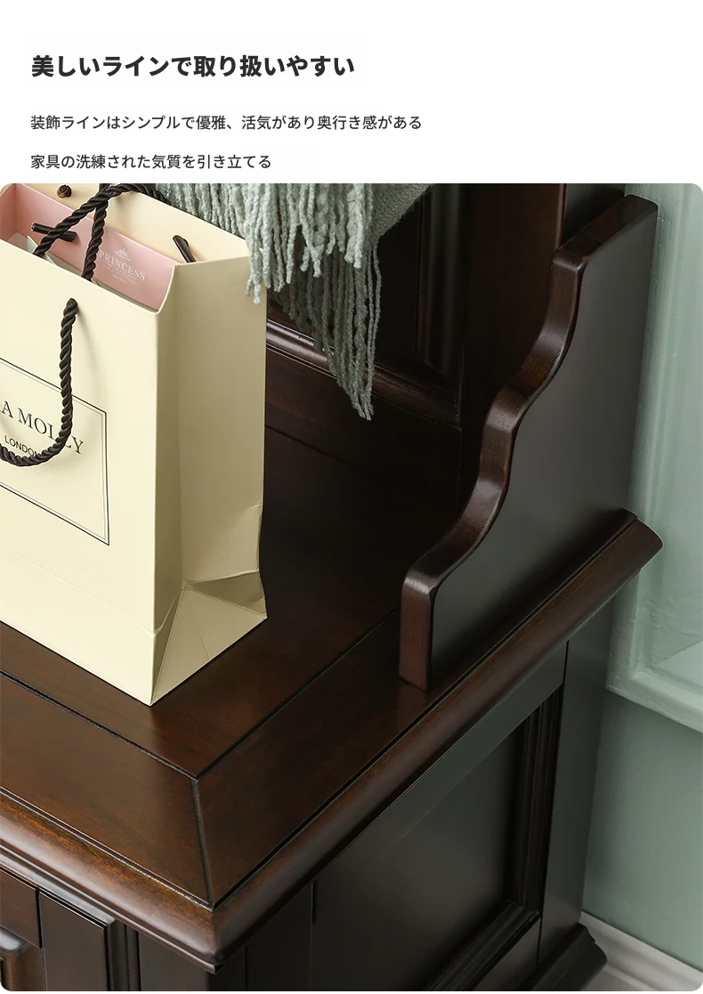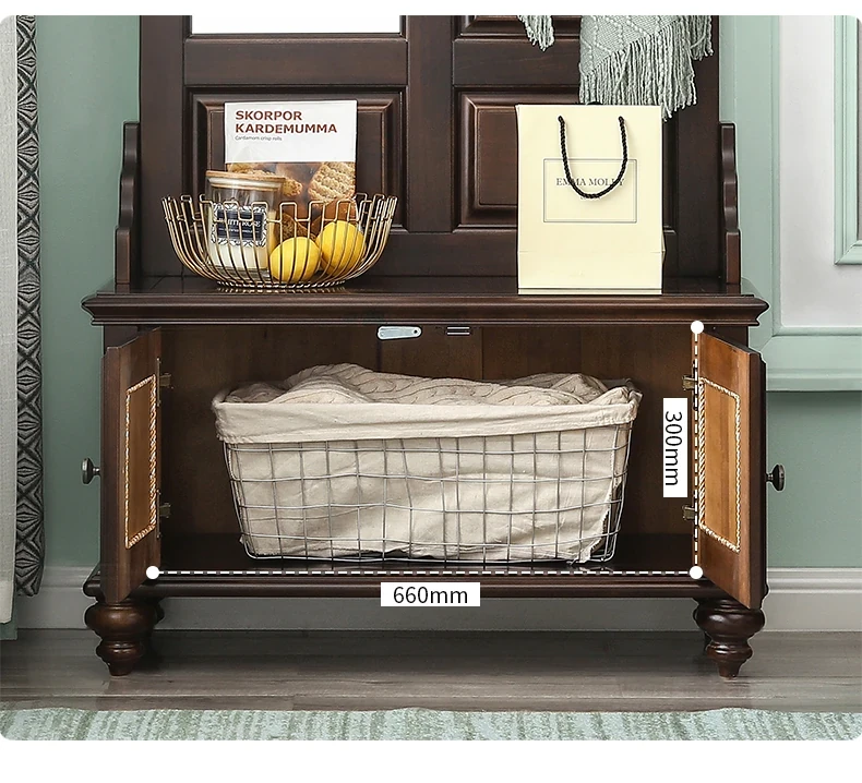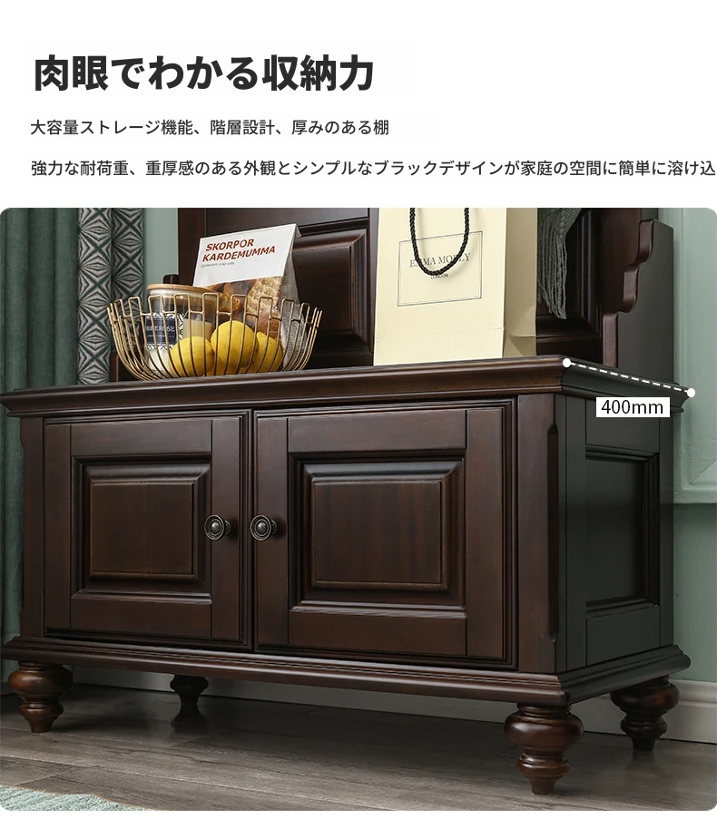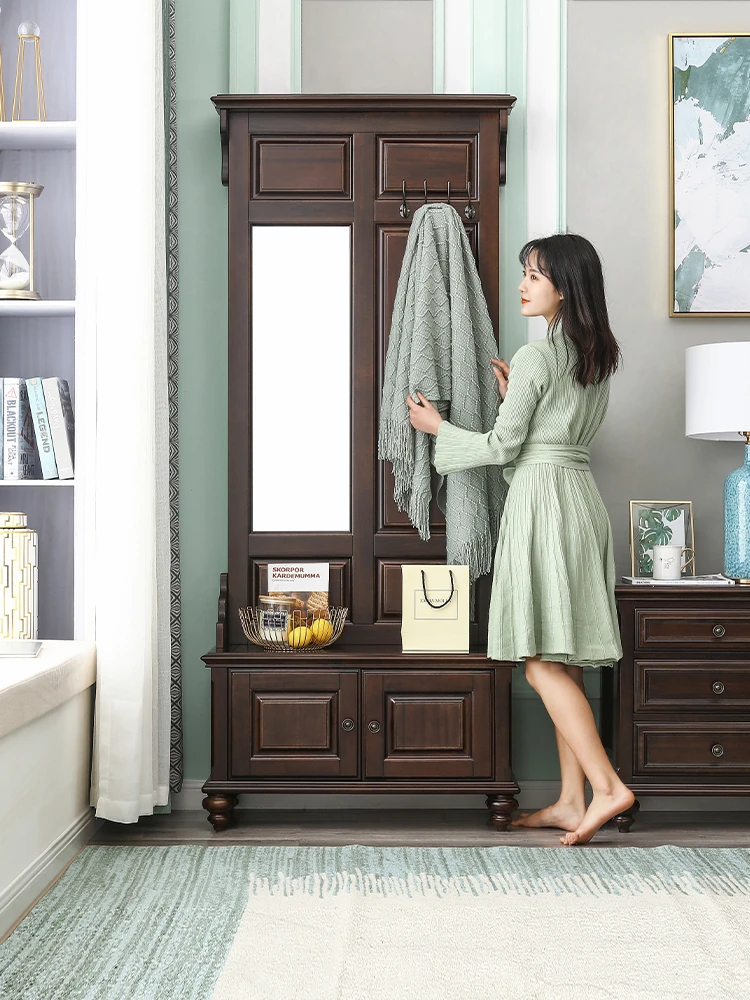 アメリカンカントリースタイルの全身鏡|全木製フロアミラー|収納キャビネット付き|軽やかなラグジュアリー感|寝室に最適な衣類ハンガー兼用!あなたの空間を美しく演出します。